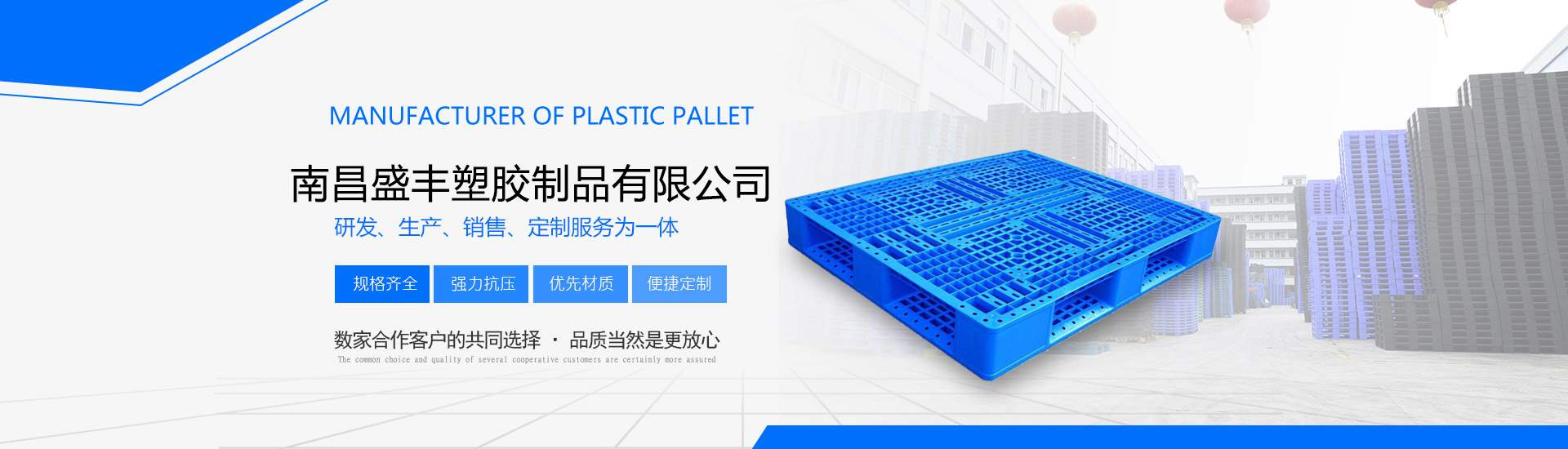 南昌盛豐塑膠制品有限公司擁有先進(jìn)大型注塑、吹塑滾塑成型設(shè)備,技術(shù)力量雄厚,是專業(yè)生產(chǎn)工業(yè)塑料產(chǎn)品的企業(yè)。主營產(chǎn)品:塑料托盤、凹槽印刷托盤、煙標(biāo)煙盒印刷托盤、貨架叉車專用托盤、出口托盤、抗摔吹塑托盤、塑料棧板、塑料吹塑托盤、塑料地臺(tái)板、塑料倉庫防潮板、塑料周轉(zhuǎn)箱、EU物流箱、歐標(biāo)箱、折疊箱、工具箱、食品箱、面包箱、面包架、周轉(zhuǎn)筐、籮、化工桶、PE水塔、塑料PE水箱、垃圾桶、塑料加藥箱、塑料一噸方桶、塑料IBC噸桶、打不爛餐具消毒箱、等制品。我們秉承誠信服務(wù)的意念,在產(chǎn)品的售后服務(wù)上,我們有著專業(yè)的業(yè)務(wù)人員定時(shí)跟進(jìn),確??蛻魸M意度!